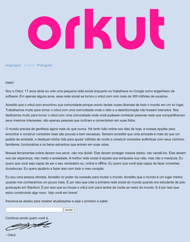 O Orkut foi uma das redes sociais mais populares no Brasil, mas o Google encerrou a rede social em 2014 e apagou todo o arquivo de comunidades em 2017 deixando muitos usuários com saudade. Entretanto, já é possível sentir um gostinho dessa nostalgia com o site do Orkut que foi reativado ontem (27) prometendo novidades em breve.