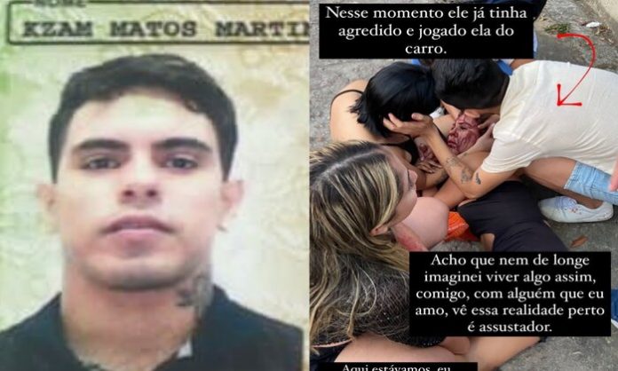 Um homem identificado como Kzam Matos Martins, 30 anos está sendo acusado de agressão contra mulher após diversas vítimas relatarem terem sofrido agressões físicas e psicológicas. Um caso que circulou nas redes sociais neste domingo (11), mostra a mulher que havia sido agredida e jogada de um carro, ensanguentada jogada em via pública.